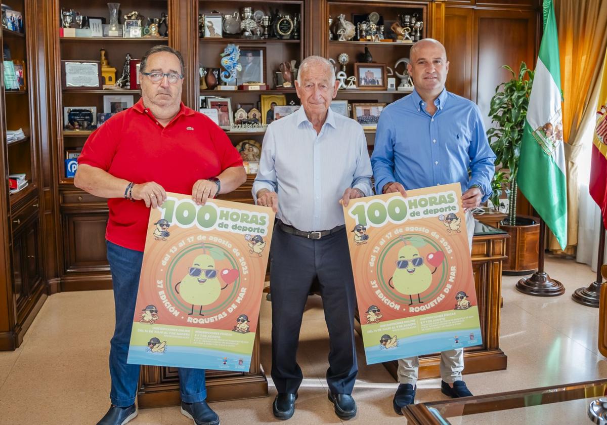El alcalde de Roquetas de Mar, Gabriel Amat, acompañado por el concejal de Deportes, Tiempo Libre y Cultura, José Juan Rubí, y el diputado de Deportes, José Antonio García, ha presentado este jueves la nueva edición ya ha destacado la consolidación del evento como uno de los principales motores turísticos y sociales del municipio durante el verano, que lo convertirán en el epicentro provincial de la práctica deportiva.