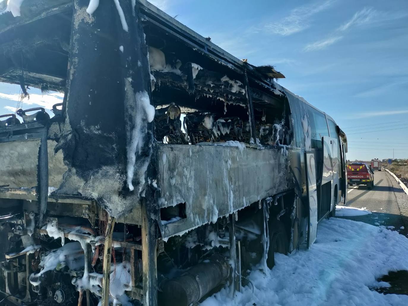 Arde un autobús militar en la A-7 a su paso por La Mojonera
