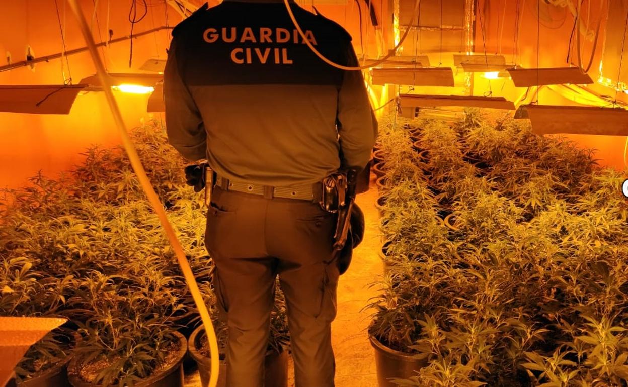 Así, la Guardia Civil procedió a realizar tres registros en las viviendas, hallando en ellas 522 plantas de marihuana, 128 lámparas con sus bombillas, 13 aires acondicionados, 123 balastros y 10 ventiladores. Si bien, a la llegada de los agentes, uno de sus ocupantes cerró la puerta, que se encontraba entreabierta, e intentó saltar a la vivienda contigua.