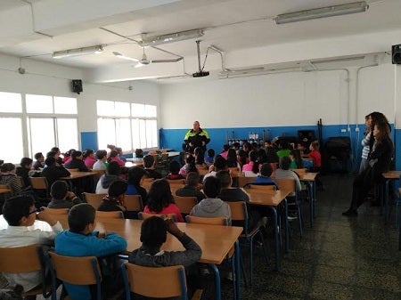 Agentes de la Policía Local de La Mojonera han colaborado con los docentes del colegio San Pedro Apóstol de la localidad con la impartición de charlas sobre educación para la seguridad vial.