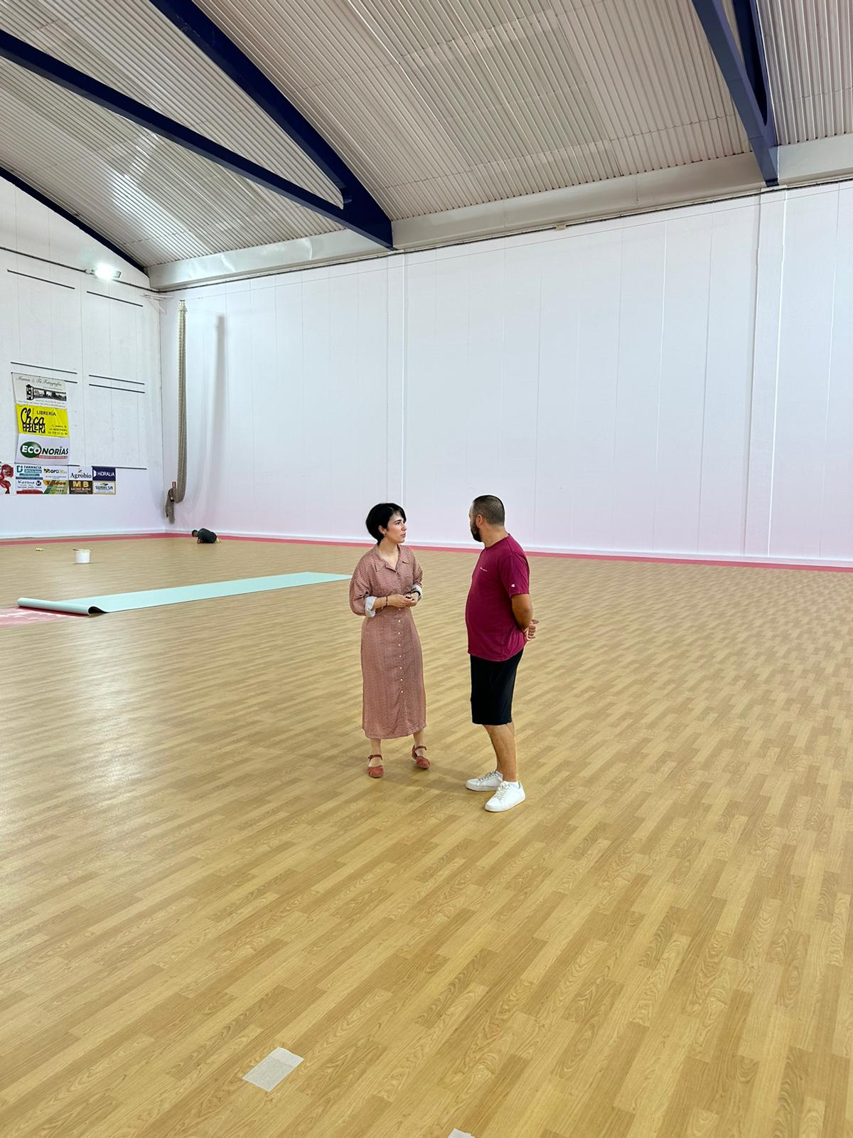 El concejal de Deportes, Ángel Juan Morales, y la concejal de Obras Públicas, Rocío del Alba Vega, visitaron las instalaciones para comprobar el avance de las obras de instalación del nuevo suelo.