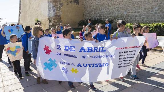 Las actividades se iniciaron con una marcha que partió desde el Castillo de Santa Ana, en la que participaron numerosos escolares, especialmente, los centros que cuentan con aulas específicas para alumnos TEA (Trastornos del Espectro Autista), es decir, Trinidad Martínez, Virgilio Valdivia, Blas Infante, Las Marinas, Las Salinas y Posidonia.
