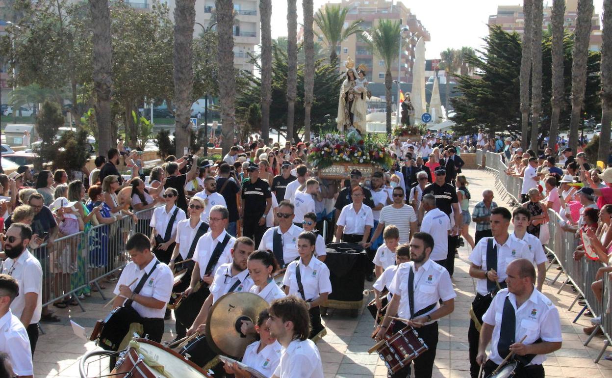 Antes de las ocho de la tarde arrancó un recorrido por el mar que llegó hasta Aguadulce escoltado por numerosas embarcaciones, para volver posteriormente a puerto.