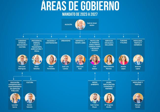 De esta forma, el Gobierno Local estará conformado por nueve delegaciones genéricas que abarcan tres ámbitos de gestión que se unifican en torno a distintas funciones, la administración, la planificación y los servicios a los ciudadanos.