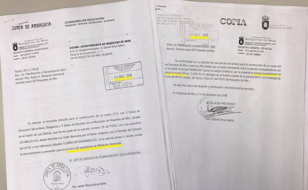 El sorprendente ofrecimiento del Ayuntamiento de Roquetas de Mar para ceder unos terrenos destinados al futuro IES de Las Salinas en el polémico sector Z- ... SAL-01, que no está urbanizado ni se sabe cuándo lo será, sigue generando reacciones. Así, después de que tras las críticas del PSOE, el equipo de Gobierno asegurara que mantiene como primera opción los terrenos junto al colegio inglés que propusieron los socialistas, desde esta formación se difundieron este viernes las cartas que se han intercambiado Ayuntamiento y Junta y que confirmarían que el ofrecimiento del solar del Z-SAL-01 se habría producido después de que la Junta ya aceptara el solar del colegio inglés.