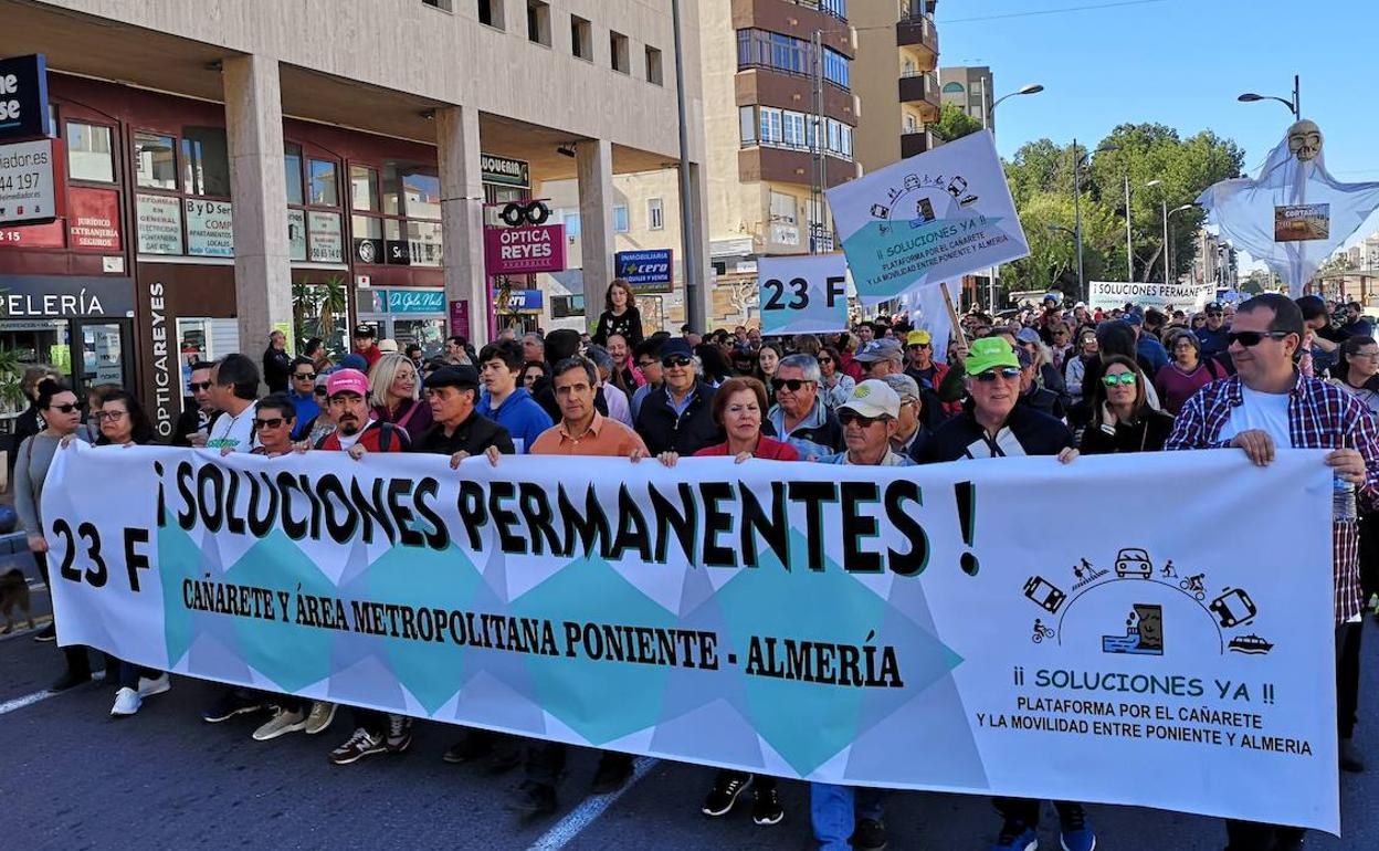 Pero pese a ese aire festivo, la movilización tenía el trasfondo del malestar vecinal por los problemas de conexión del Poniente con la capital y viceversa tras el corte de El Cañarete. Unos problemas que afectan a toda esta gran área metropolitana en la que viven medio millón de habitantes, pero muy especialmente al municipio de Roquetas de Mar, sobre todo a Aguadulce.
