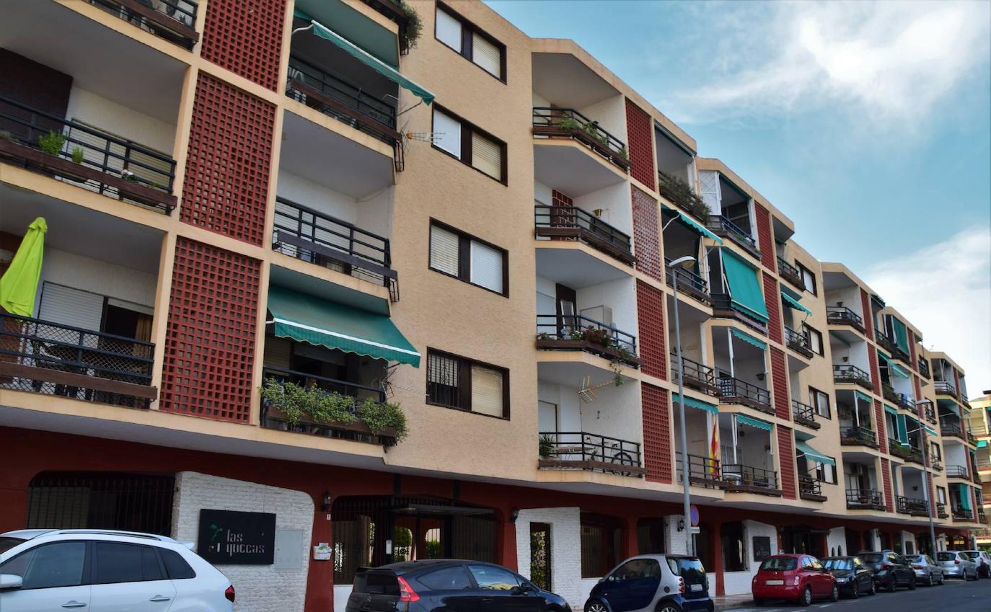 Los apartamentos 'Las Yuccas' son un buen ejemplo de ello. Por un lado, se trata de un bloque muy horizontal y poco vertical, contando solamente con 4 plantas que dominan la Plaza de las Yucas, como lugar de aparcamiento y esparcimiento vecinal. Por otro, los bajos del edificio se encuentran liberados, siguiendo la idea de evitar crear grandes pantallas en este nuevo paisaje urbano, y en su lugar favorecer la conexión visual e incluso poder ver el mar desde distintas localizaciones. Esta última cuestión, no obstante, se ha convertido hoy en imposible por las numerosas construcciones que han ido aflorando con no tan buenos criterios urbanísticos.