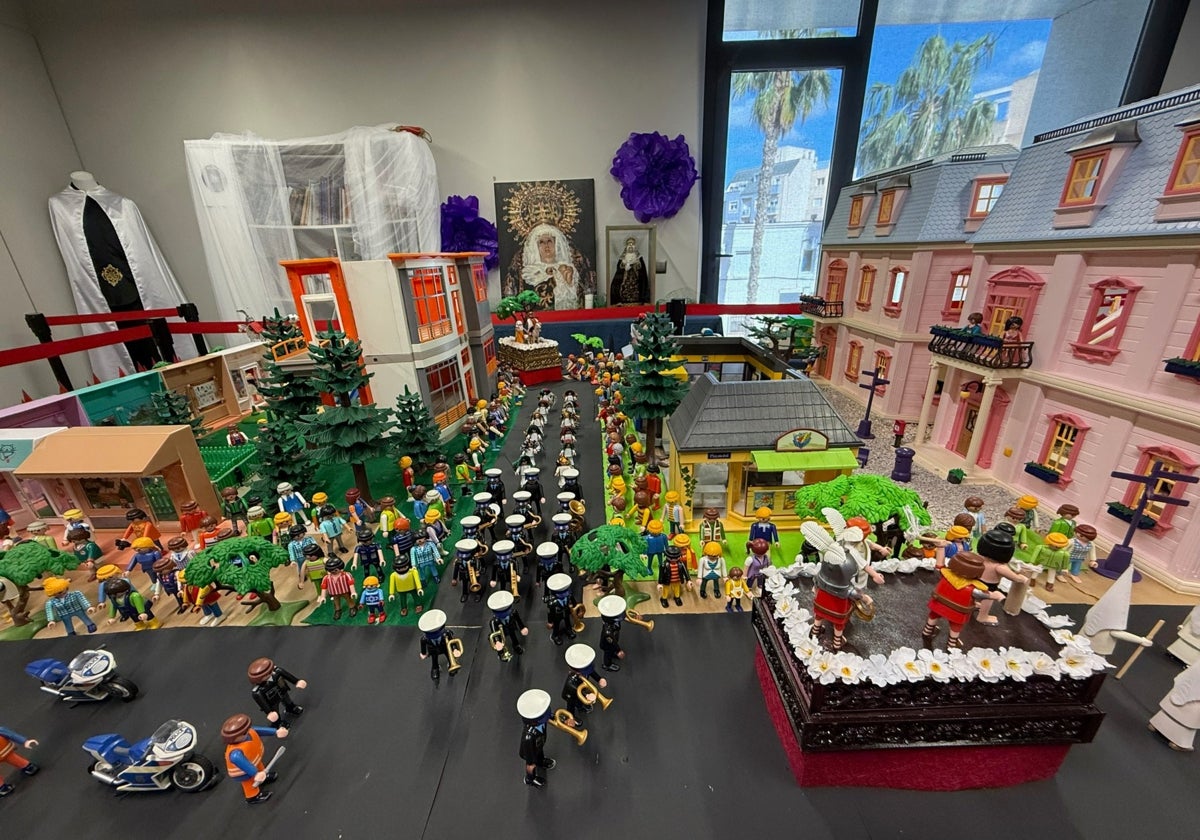 Además, se enriquece con elementos de una ciudad, como las casas señoriales, parques y zonas de juegos. La exposición cuenta además con varios elementos cedidos por la Cofradía de Nuestra Señora de los Dolores. Un traje de penitente, un cuadro y una emocionante reproducción de la Virgen de los Dolores.
