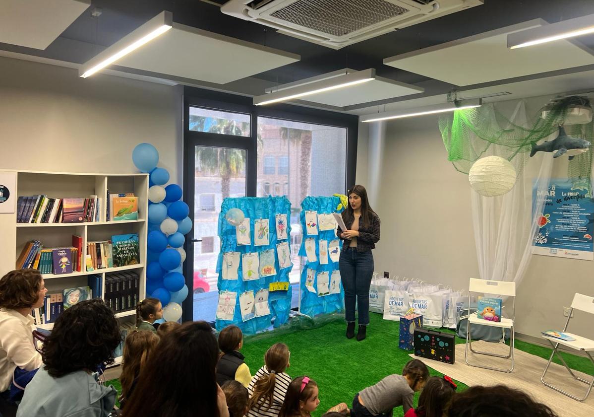 El concurso forma parte del programa de dinamización del Aula del Mar, que ha creado Contraportada y Asiento Vip para el Área de Turismo y Playas del Ayuntamiento de Roquetas de Mar. Tras la entrega de premios y la inauguración de la exposición todos juntos han disfrutado de la lectura del cuento '¿Los peces pueden volar?', de Celia López, editado por Círculo Rojo, que ha narrado la propia autora.