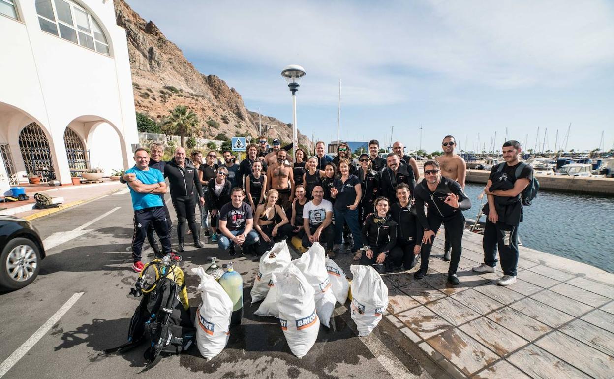 Cerca de medio centenar de personas participaron en la XIII Limpieza de Fondos en el Puerto de Aguadulce
