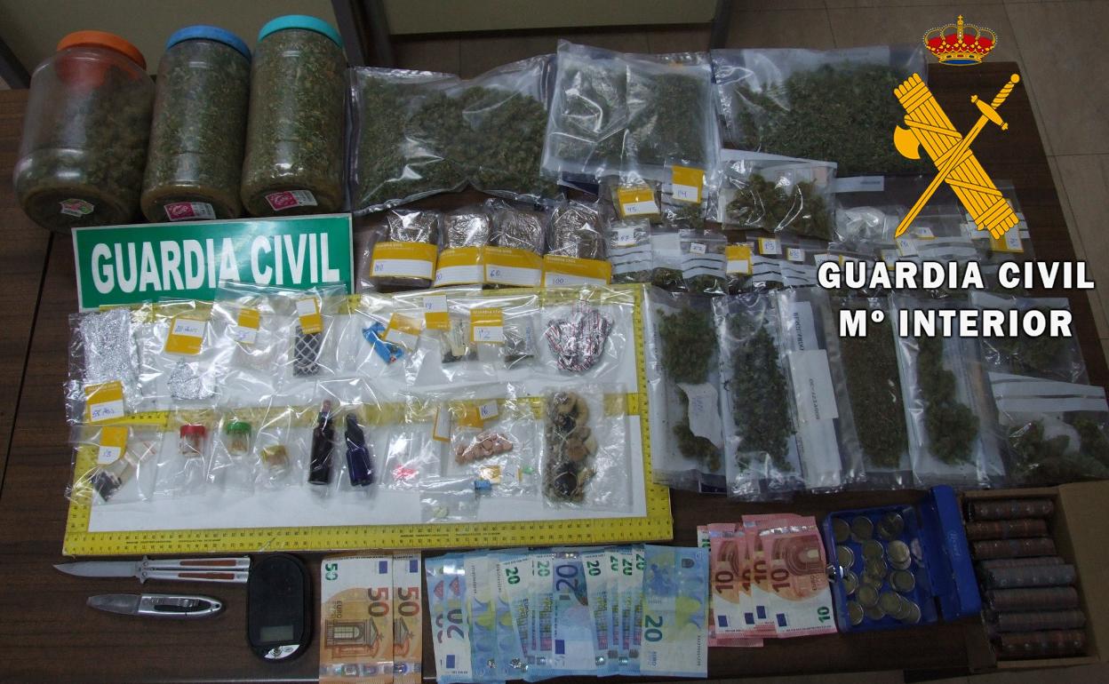 La Guardia Civil intervino además de marihuana y hachis y diverso material, pequeñas cantidades de heroína, cocaína, cristal,éxtasis,setas alucinógenas, LSD y GHB.