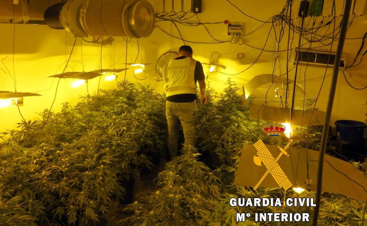 Tras inspeccionar y proceder al correspondiente registro, la Benemérita intervino en el lugar un cultivo indoor de marihuana, incautando la cantidad de 65 plantas, 34 lámparas, 41 balastros y ocho equipos completos de aire acondicionado.