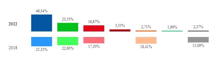 El panorama en Vícar, con un 83% escrutado, es el que presenta un mayor contraste con respecto a 2018. Hace tres años y medio el municipio vicario fue una excepción en el Poniente con una victoria del PSOE, que gobierna en el Ayuntamiento. Los socialistas consiguieron entonces el 26,38%, mientras que en esta ocasión se ha bajado de forma importante hasta el 20,78% (1.282 votos) y pasa a la tercera posición. El PP se hace con una victoria contundente también en Vícar, donde ha pasado del 25,84% en 2018 al 41,34% en esta ocasión (2.550 votos). Por su parte, Vox ha subido en porcentaje ya que en 2018 consiguió el 24,28% y en esta ocasión el 29,96% (1.848 votos). En el municipio vicario ha bajado de forma más acusada la participación que en sus vecinos, con un 51,46% en esta ocasión frente al 55,16% de 2018. Han ejercido su derecho al voto 6.210 vicarios.
