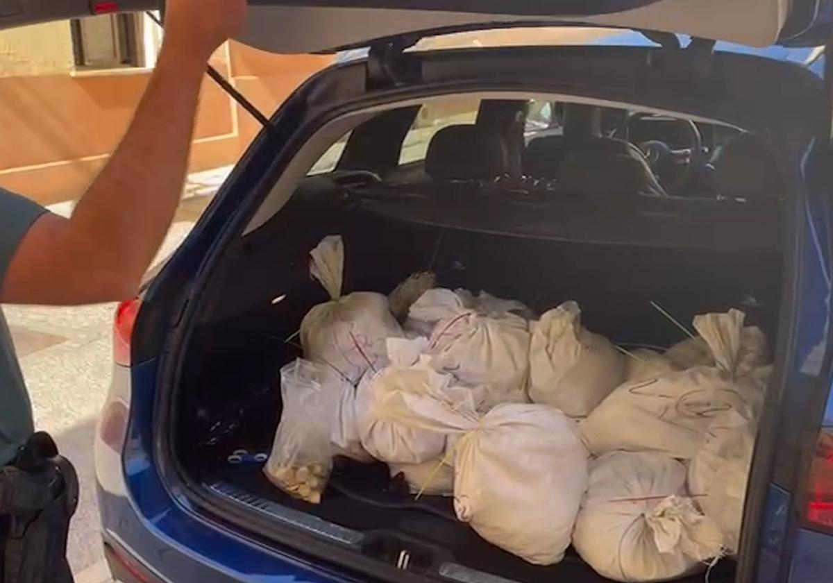 Tras registrar exhaustivamente el vehículo, intervinieron 115 bolsas con un total de 354,94 kilogramos de monedas de 20 céntimos, 3,057 kilos en monedas de 50 céntimos, estimándose un valor aproximado de 13.550 euros en monedas con apariencia ilícita.