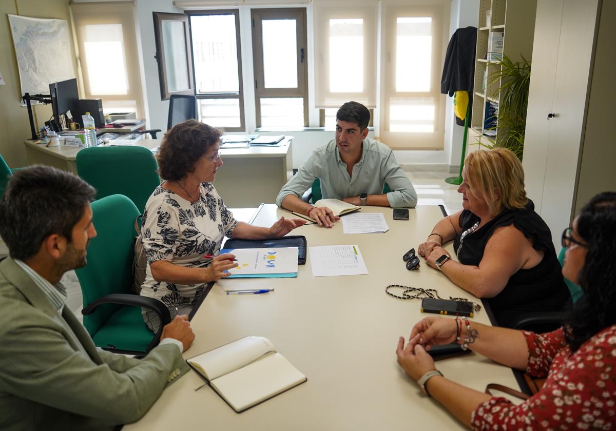 El concejal de Agricultura y Medio Ambiente, Manuel Martínez; el concejal de Juventud y Educación, Javier Rodríguez; y la concejala de Discapacidad, Salud Mental y Prevención de Adicciones, María del Mar Martínez; se han reunido con miembros de Down El Ejido, para conocer las distintas acciones que desarrollará la asociación.