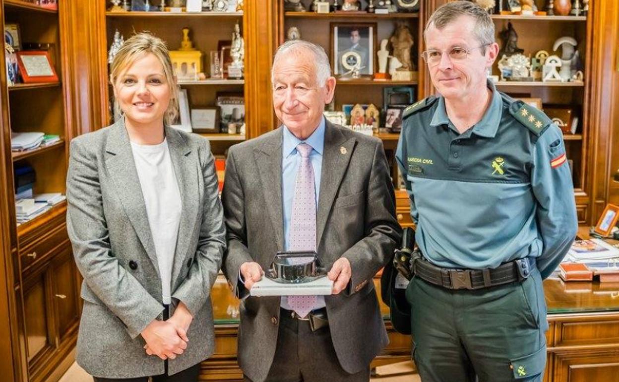 El coronel Arturo Prieto entregó un tricornio de mármol al alcalde, Gabriel Amat, como agradecimiento de la primera Medalla de Honor de la ciudad otorgada a la Guardia Civil hace unas semanas