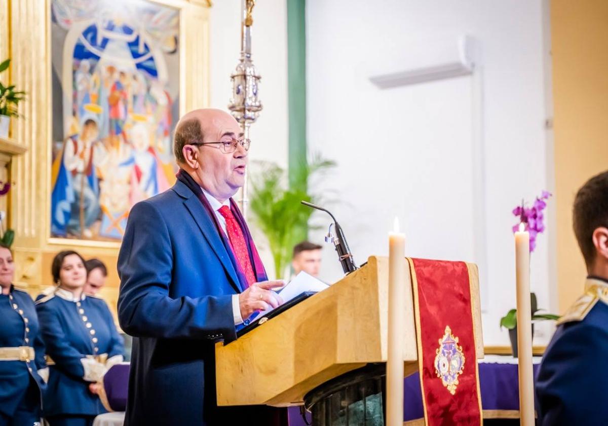 «La Semana Santa no puede ser solo una levantá o un solo de trompeta, debe ser un sentimiento vivo de nuestros corazones, revolver la memoria, unión en busca del desconsuelo, las hermandades deben ser una forma de entender la vida, con solidaridad, empatía y fe», comentó en su intervención.