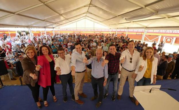 El presidente del Partido Popular de Andalucía y de la Junta de Andalucía, Juanma Moreno, arropó ayer al candidato a la reelección en la Alcaldía ... de Roquetas, Gabriel Amat, en una paella popular que tuvo como escenario la Plaza de Toros del municipio.