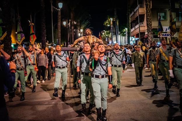 Los actos de la Semana Santa roquetera se iniciaron el pasado Domingo de Ramos con numerosas procesiones. Uno de los momentos más importantes cada año, ... teniendo en cuenta el interés que despierta entre cientos de personas que acuden a verlo, es la Guardia al Cristo de la Buena Muerte en El Parador, por parte de miembros de La Legión, que al término de la jornada trasladan a hombros la imagen del Cristo hasta la Casa de Hermandad.