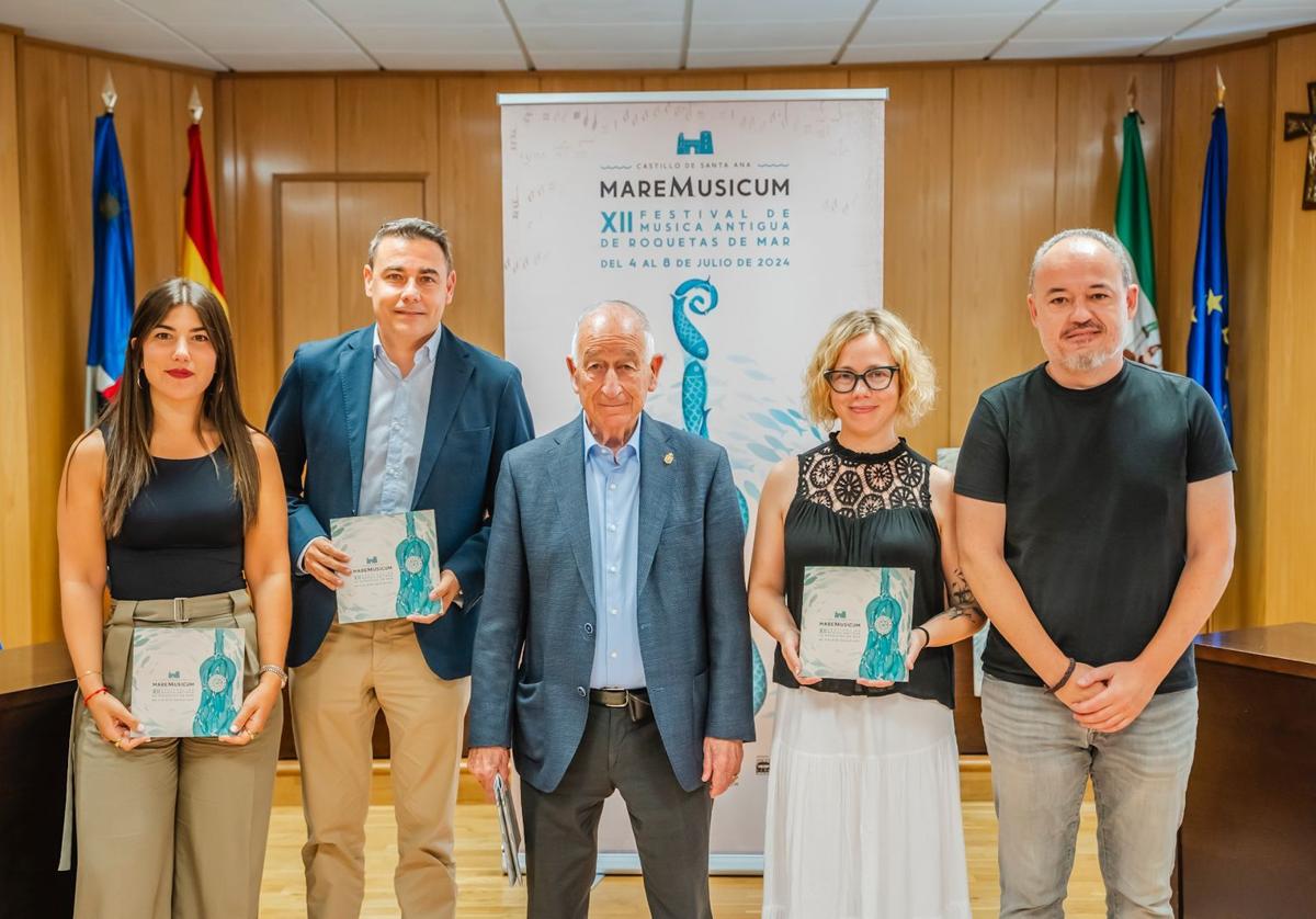 El alcalde de Roquetas de Mar, Gabriel Amat, junto con el concejal de Cultura, Daniel Salcedo, y los directores de este certamen, Belinda Sánchez-Capuchino y Miguel Ángel García, han presentado este martes la XII edición del festival 'Mare Musicum', que se celebrará del 4 al 8 de julio.