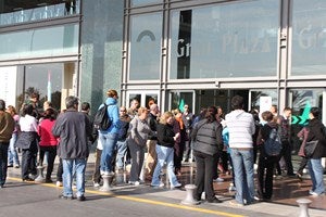 También esta madrugada los piquetes visitaron el centro comercial Gran Plaza intentando convencer sin éxito a los trabajadores de las grandes superficies. Especialmente tensa fue la entrada del primer turno de Leroy Merlin. El centro amaneció inusualmente vigilado desde primera hora de la mañana, con vigilantes privados controlando todos los accesos, algunos con la cara tapada, y con dotaciones de la Guardia Civil, que aumentaron considerablemente al acercarse la hora de apertura. A las 10 de la mañana un piquete informativo se posicionó a las puertas del centro comercial y aunque no lograron que ningún trabajador de los que entraban se uniera a la huelga, sí consiguieron cambiar de opinión a algún cliente.