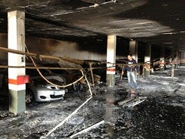 Un aparatoso incendio en los garajes del residencial Torrevela, en Las Colinas de Aguadulce, dejará por un tiempo a numerosas familias sin vivienda, tras los daños sufridos en el edificio que tardarán bastante tiempo en ser reparados. El incendio se originó a la una de la madrugada de ayer miércoles en uno de los vehículos aparcados en el garaje del edificio, pero rápidamente se extendió al resto del garaje, que alcanzó unas temperaturas muy altas, hasta el punto de reventar las bajantes de buena parte de la construcción.