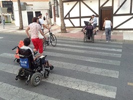Además de usar sillas de ruedas, los participantes, entre los que se encontraban los concejales de la formación de izquierdas y miembros de asociaciones de discapacitados, así como vecinos, hicieron el recorrido con muletas, con vendas en los ojos y otros elementos que dificultan los movimientos para comprobar hasta qué punto esta parte de la localidad facilita los desplazamientos de aquellos que tienen alguna discapacidad.