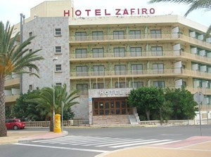 El hotel Zafiro se asienta sobre una parcela de 8.100 metros cuadrados, en pleno corazón de la Urbanización de Roquetas. Cuenta con semisótano, planta baja y cuatro plantas más y tiene 11.724 metros cuadrados construidos. Además tiene una zona de aparcamientos para 100 vehículos con una superficie de 800 metros cuadrados, dos piscinas y espacios libres. Tiene 216 habitaciones dobles y 28 individuales.
