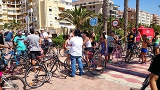 Medio centenar de personas se concentraron para pedir el acceso de las bicis a las playas