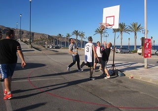 Como hiciera el día anterior con la cultura instalando un escenario al aire libre, Izquierda Unida llevó a la práctica este domingo otra de sus propuestas para estas elecciones, concretamente la apuesta por un deporte asequible y gratuito para todos los ciudadanos. Para ello, miembros de la candidatura de Izquierda Unida al Ayuntamiento de Roquetas instalaron una pista temporal de baloncesto que por unas horas se convirtió en un escenario deportivo abierto a todos.
