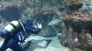 Juan, una tortuga boba sin una aleta, ya vive entre los meros del Aquarium