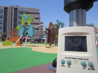 Para comprobar los problemas existentes, los concejales de la formación recorrieron la semana pasada la recientemente remodelada plaza Roma de La Romanilla, y termómetro en mano, llegaron a medir 44 grados en algunas superficies, a pesar de las peticiones de incrementar las sobras en el proyecto que no fueron atendidas. «Muchas partes metálicas de los juegos queman al contacto con la mano, imposibilitando su uso, además de los riesgos de golpes de calor, lo que hace que estas zonas sólo sean aprovechables en una fracción mínima del día», dijo el edil.