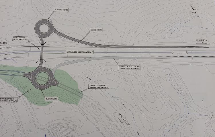 Amat espera que "este mismo año" se pueda disfrutar ya del enlace y ha explicado que el Ayuntamiento ha solicitado a la Diputación Provincial su colaboración para la redacción del proyecto junto a la Dirección General de Carreteras de Almería: "Una vez redactado, la obra podrá salir a licitación y ser construida en unos meses", mantiene sobre los próximos pasos a seguir. También ha aclarado que la conexión "será sólo de entrada desde la autovía a la A7, ya que el cajón existente no permite realizar un vial de doble sentido para ejecutar una salida desde el municipio en dirección a El Ejido".