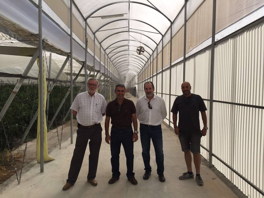 La primera explotación agraria visitada consta de dos invernaderos multicapilla de cultivo de hortalizas, uno de ellos de 2,03 hectáreas en arrendamiento y el otro de 2,26 hectáreas en propiedad, y dedicados al cultivo de tomate. Con la ayuda de 110.610 euros para una inversión de 276.527 euros, se ha subvencionado la construcción de un invernadero multicapilla enarenado en la parcela 39 de 20.790 metros cuadrados que genera un empleo (aproximadamente) de 1.200 jornales al año.