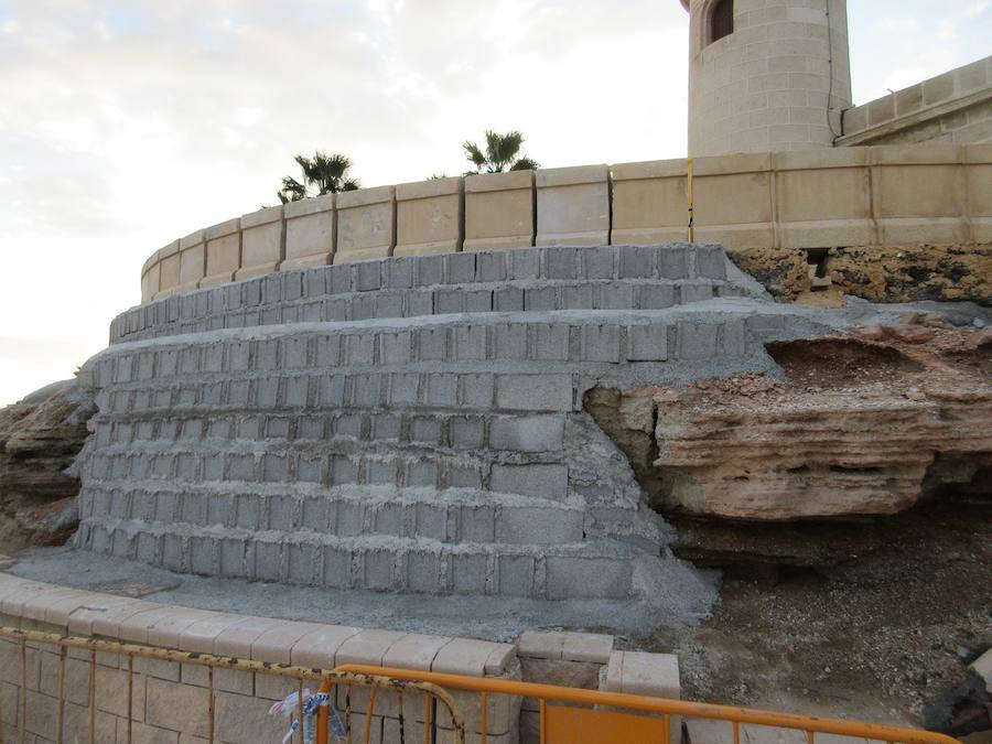 Tras las lluvias del pasado mes de diciembre, la base del Faro de Roquetas, todo un símbolo del municipio, quedo bastante dañada con el desprendimiento ... de los bloques de hormigón que delimitaban la zona superior, que acabaron en el tramo peatonal inferior que forma parte del paseo marítimo que atraviesa esta histórica zona.