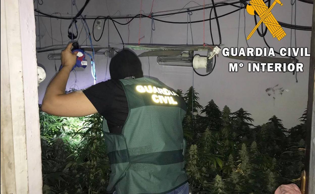 En la última fase de la investigación, los agentes de la Guardia Civil procedieron a la inspección de las viviendas localizando dos plantaciones de marihuana, una en la vivienda habitada por la pareja de sexagenarios con 99 plantas y otra de 73 plantas en la vivienda colindante que se encontraba ocupada para tal fin.