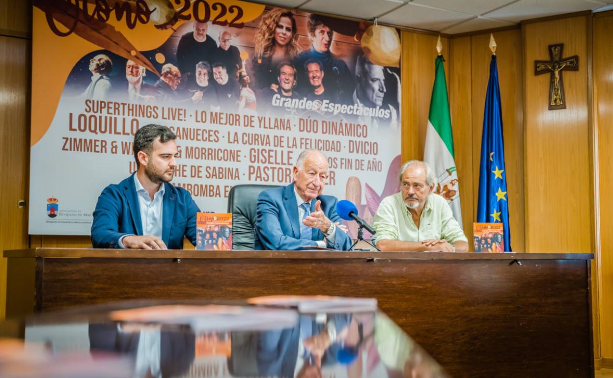El alcalde, Gabriel Amat, junto al concejal de Educación, Cultura y Juventud, Juan Carlos Muyor, y el director del espacio escénico, Juan José Martín Uceda, presentó este lunes la programación de un otoño en el Auditorio por el que pasarán entre otros el Dúo Dinámico, Loquillo, Pastora Soler, la Royal Film Orchestra o el musical 'Superthings Live!'.