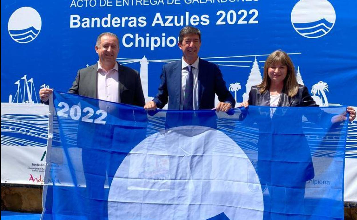 El municipio de Roquetas de Mar ya tiene en su poder los distintivos de las banderas azules de las playas del municipio, que lucirán este ... año en media docena de ellas, todas las urbanas, como viene ocurriendo en los últimos años. Las banderas fueron entregadas en el claustro del Santuario de Nuestra Señora de Regla en Chipiona por el vicepresidente de la Junta, Juan Marín, al concejal de Turismo y Playas, Francisco Barrionuevo, que asistió al acto.
