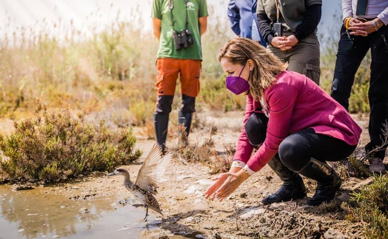 Una treintena de ejemplares de cerceta pardilla, una de las aves más amenazadas de Europa, en riesgo de extinción, fueron soltados ayer en el paraje ... natural de Punta Entinas Sabinar en Roquetas de Mar con la presencia de la consejera de Agricultura y Desarrollo Sostenible, Carmen Crespo.