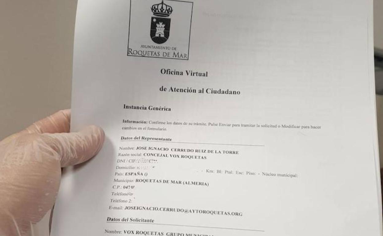 La formación recuerda que durante el estado de alarma se han celebrado numerosos plenos telemáticos en la provincia y Vox considera incomprensible que, en los municipios de Vícar, Níjar Roquetas de Mar no se acceda a realizar dichos plenos, «vulnerando así derecho fundamental de los concejales de la oposición a la participación en los asuntos públicos».