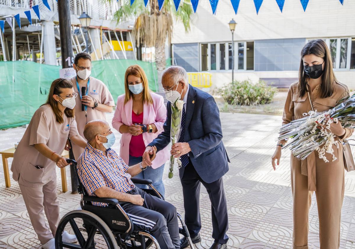 El alcalde en funciones, Gabriel Amat, acompañado por las concejalas, Rocío Sánchez y Loles Moreno, asistieron este pasado viernes a uno de los actos centrales de este aniversario que se celebró en el patio de la residencia.