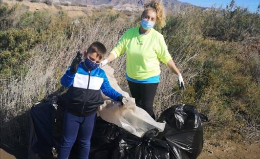 Merche Jiménez, más conocida como 'Merche Azul Azul' en redes sociales, es un rostro habitual en las limpiezas de toda la provincia, casi siempre acompañada de su nieto Sergio. Por su cuenta o uniéndose a las campañas de las asociaciones, Merche ha recorrido toda Almería y su visión es muy negativa. «Cada vez que salgo vuelvo prácticamente llorando», reconoce. «Amo mucho la naturaleza y ando mucho, y tengo un nieto al que quiero dejar algo lejos de lo que hay», explica. Esta vecina de Roquetas de Mar desde hace 11 años lamenta la falta de interés de las administraciones, de la mayoría de los agricultores y de la propia sociedad en general, ya que asegura que en sus publicaciones en redes sociales también se encuentra con comentarios negativos hacia su compromiso. «No hay derecho a que haya gente a la que le da igual todo», explica. Merche achaca el problema a la educación cívica y bajo su punto de vista «no se ha avanzado nada».