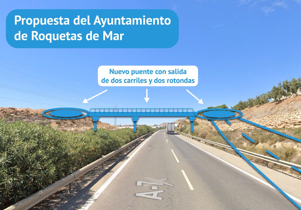 Desde el Ayuntamiento explican que la salida de la autovía propuesta entre el pilar del puente y su base es «muy compleja, tan sólo de un carril, y su proximidad a la salida actual la hace confusa, comprometiendo la seguridad vial». Esa salida, también, «anularía la actual incorporación a la autovía dirección El Ejido, que tendría que trazarse más adelante».