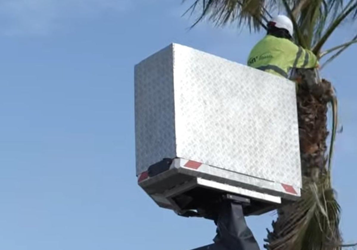 Roquetas realiza trabajos de poda en altura cerca del Aquarium Costa de Almería