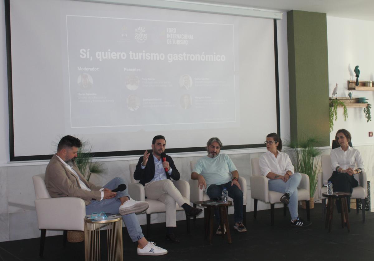 El foro comenzó con la mesa redonda llamada 'Sí, quiero turismo gastronómico, compuesta por los chefs Tony García y Estefanía Marchal, el diputado delegado de Promoción Agroalimentaria, Comercio y Consumo, Carlos Sánchez, y la secretaria general de la Agencia de Gestión Agraria y Pesquera de Andalucía, Margarita Cobos, acompañados del moderador y director de la escuela hostelería y turismo de Almería, Óscar Palomino.