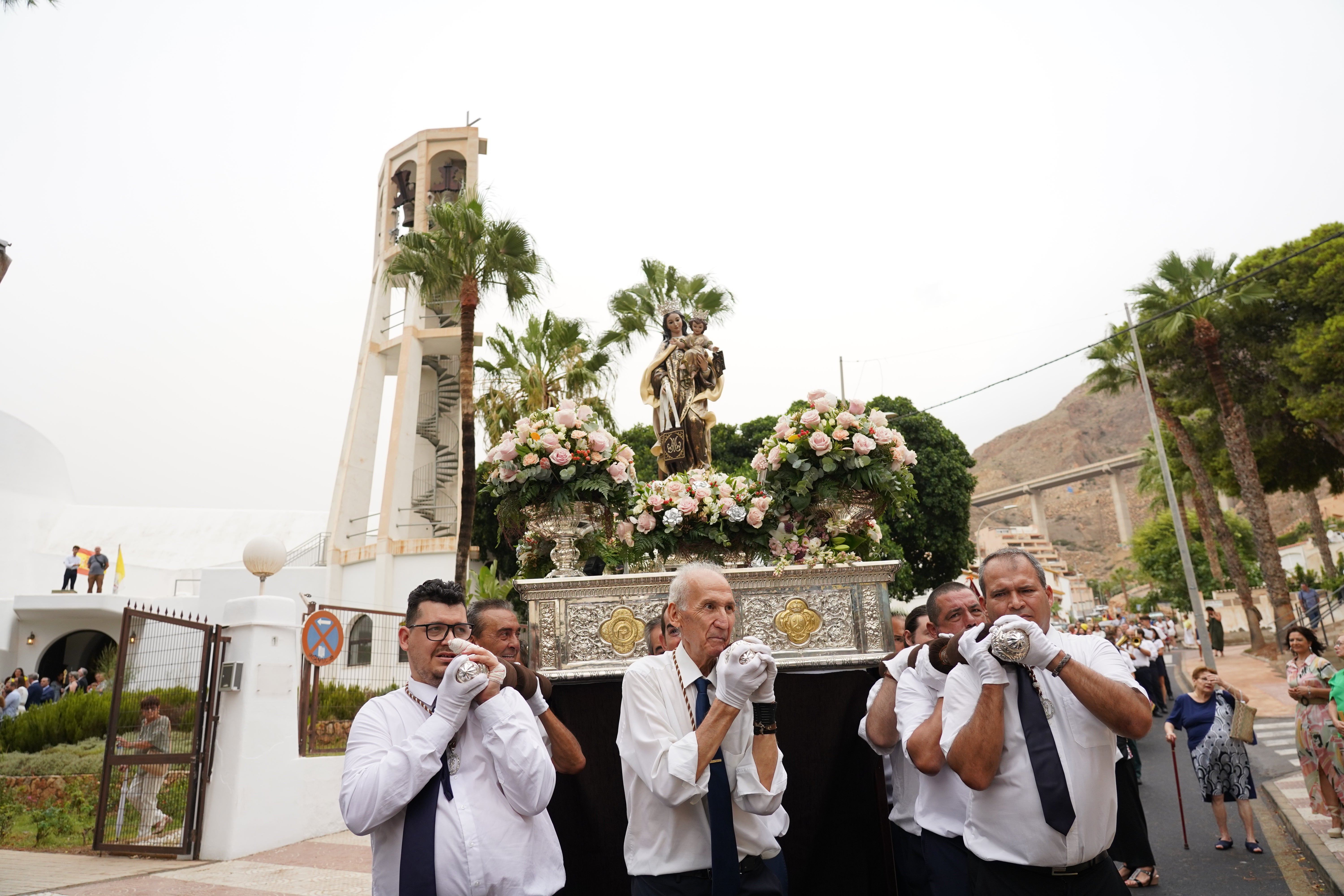 Una multitud de personas disfrutaron de una jornada festiva y religiosa acompañando a la Virgen en su salida de la parroquia local. Entre ellos, se encontraron algunas personalidades de la zona como el alcalde de Roquetas de Mar, Gabriel Amat y el teniente alcalde de la misma localidad.