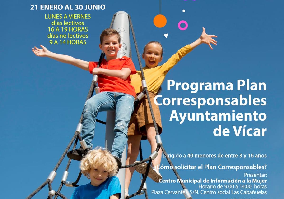 Tras el éxito del Plan Corresponsables de Vícar en su primera fase, el Consistorio vicario informa de la apertura de un nuevo plazo de inscripción ... para los próximos meses. De esta forma, desde este martes 14 de enero hasta el viernes 17 podrán formalizarse las solicitudes para beneficiarse del programa.