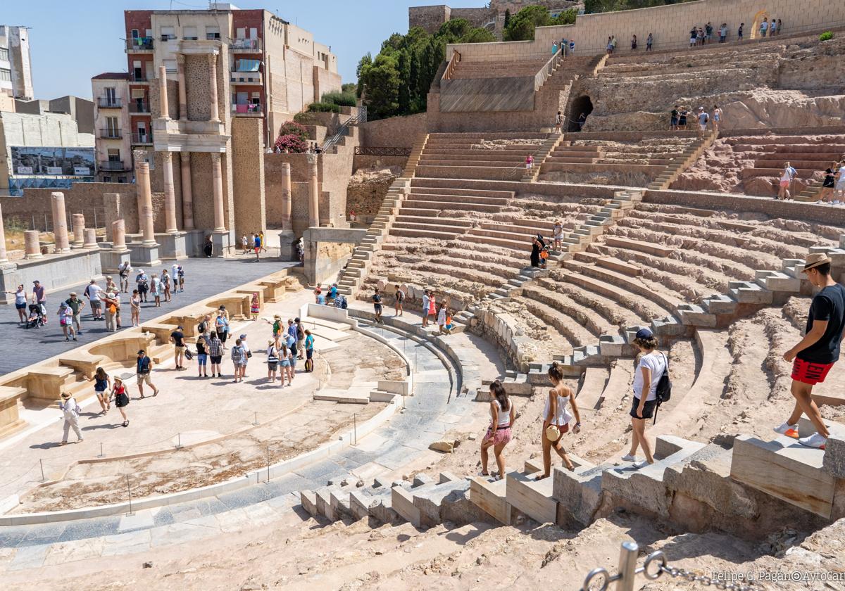 Cartagena es una ciudad portuaria y una base naval en la región de Murcia, en el sureste de España. La ciudad fue fundada por los cartaginenses cerca del año 220 a.C. y alcanzó su auge durante el período romano. Entre sus numerosas ruinas romanas, se encuentra el teatro del siglo I a.C. y la Casa de la Fortuna, una villa con murales y mosaicos.