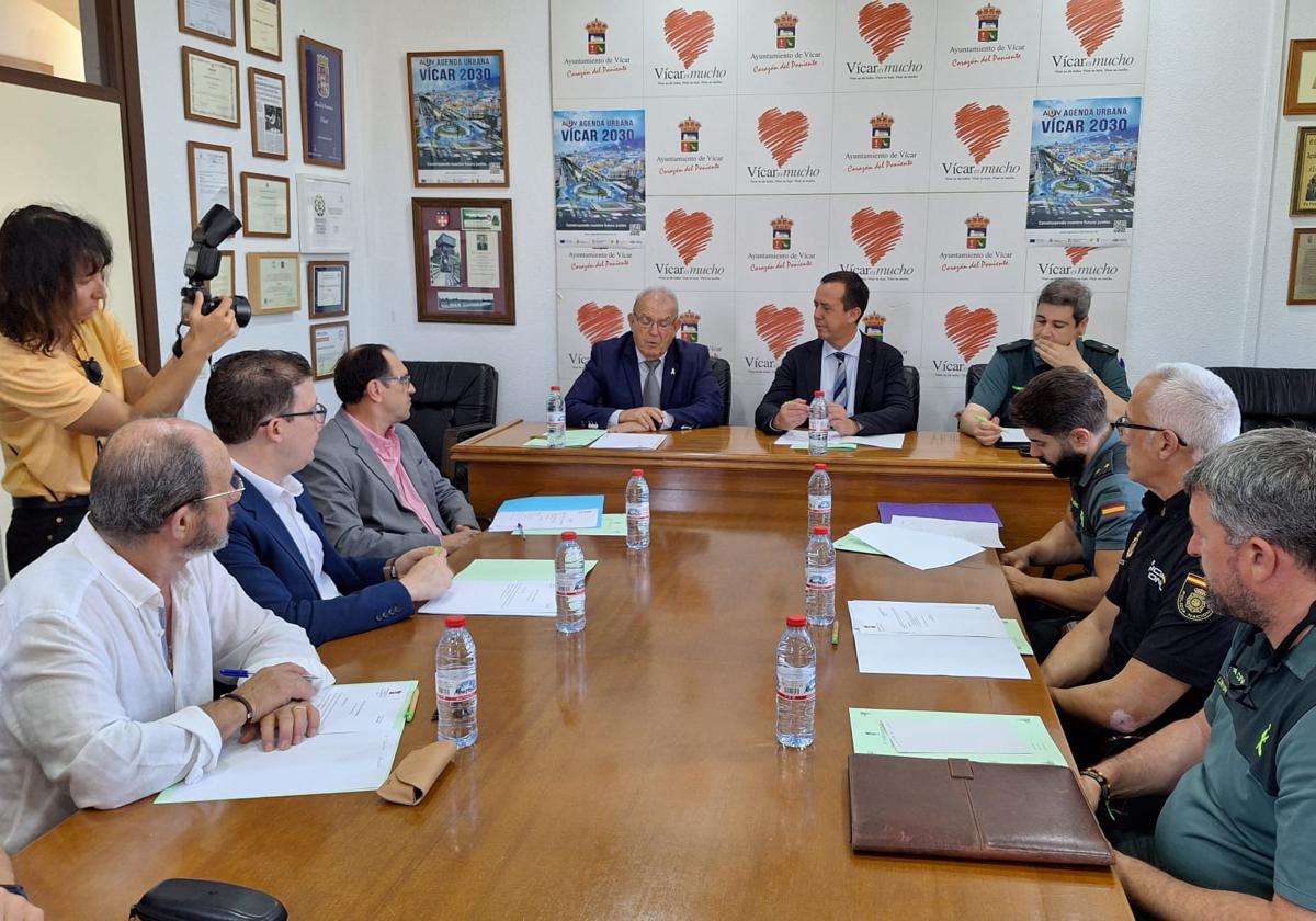 El subdelegado del Gobierno en Almería, José María Martín Fernández, copresidió junto al alcalde de Vícar, Antonio Bonilla, la Junta Local de Seguridad. En el ... encuentro, celebrado en el Ayuntamiento de este municipio y en el que participaron el comandante de la compañía de la Guardia Civil en El Ejido, Jesús Mira, agentes de la Guardia Civil, la Policía Local, la Policía Adscrita de la Comunidad Autónoma de Andalucía y representantes de la corporación, se trataron diferentes temas relacionados con la seguridad de esta localidad del Poniente almeriense.