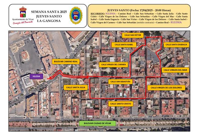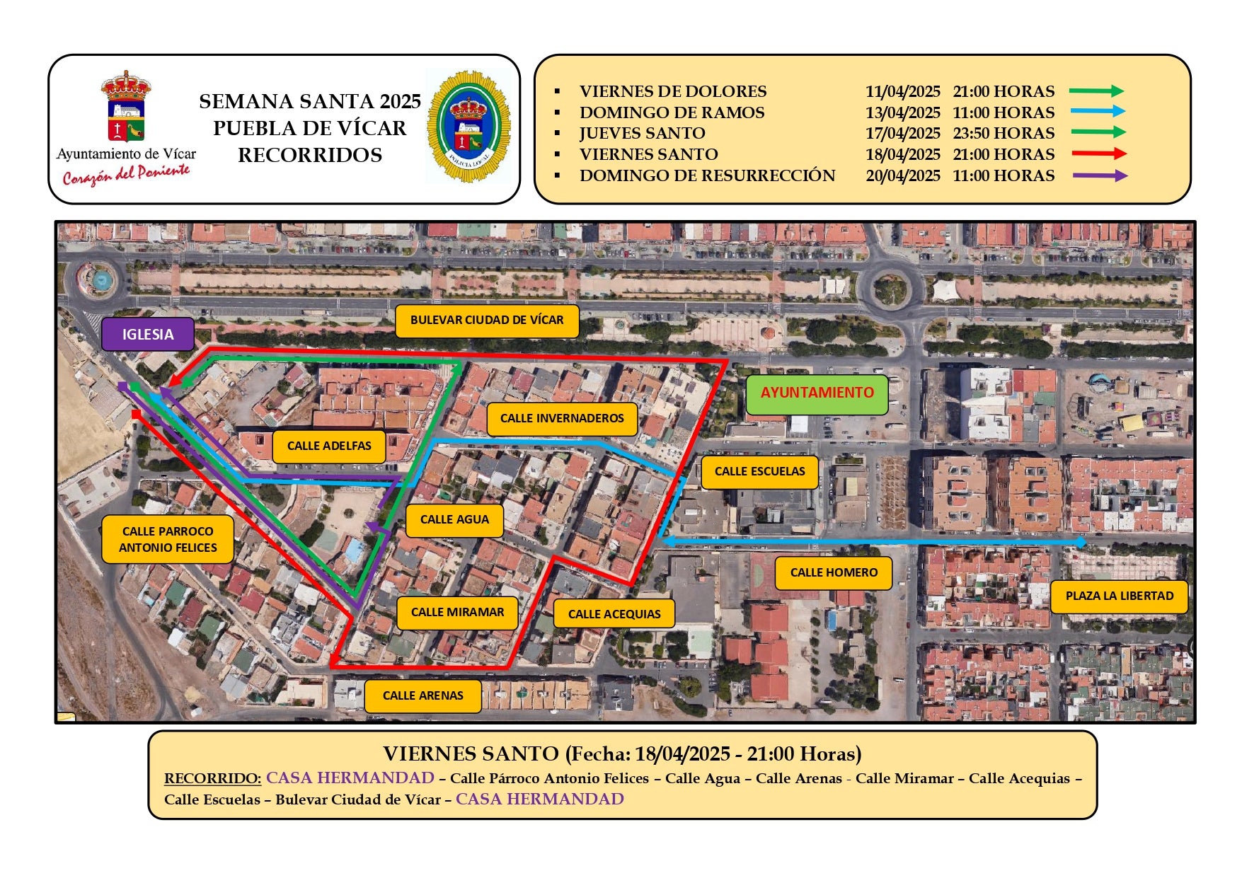 Las dos hermandades con la que cuenta Vícar, el Santísimo Cristo de la Paz y Nuestra Señora de los Dolores, de La Gangosa, y el Santísimo Cristo de la Esperanza y Nuestra Señora de la Pasión, de La Puebla, harán sus estaciones de penitencia durante el Jueves y Viernes Santo, además de ellos, los Viacrucis de La Gangosa y La Villa y la Procesión Infantil del Domingo de Resurrección. Vienen a completar este año la presencia popular en sus calles,